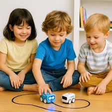 They follow the line you draw on the floor, sense your presence, chase you or run away, can be driven with an RC remote, and are fully rechargeable (goodbye batteries).