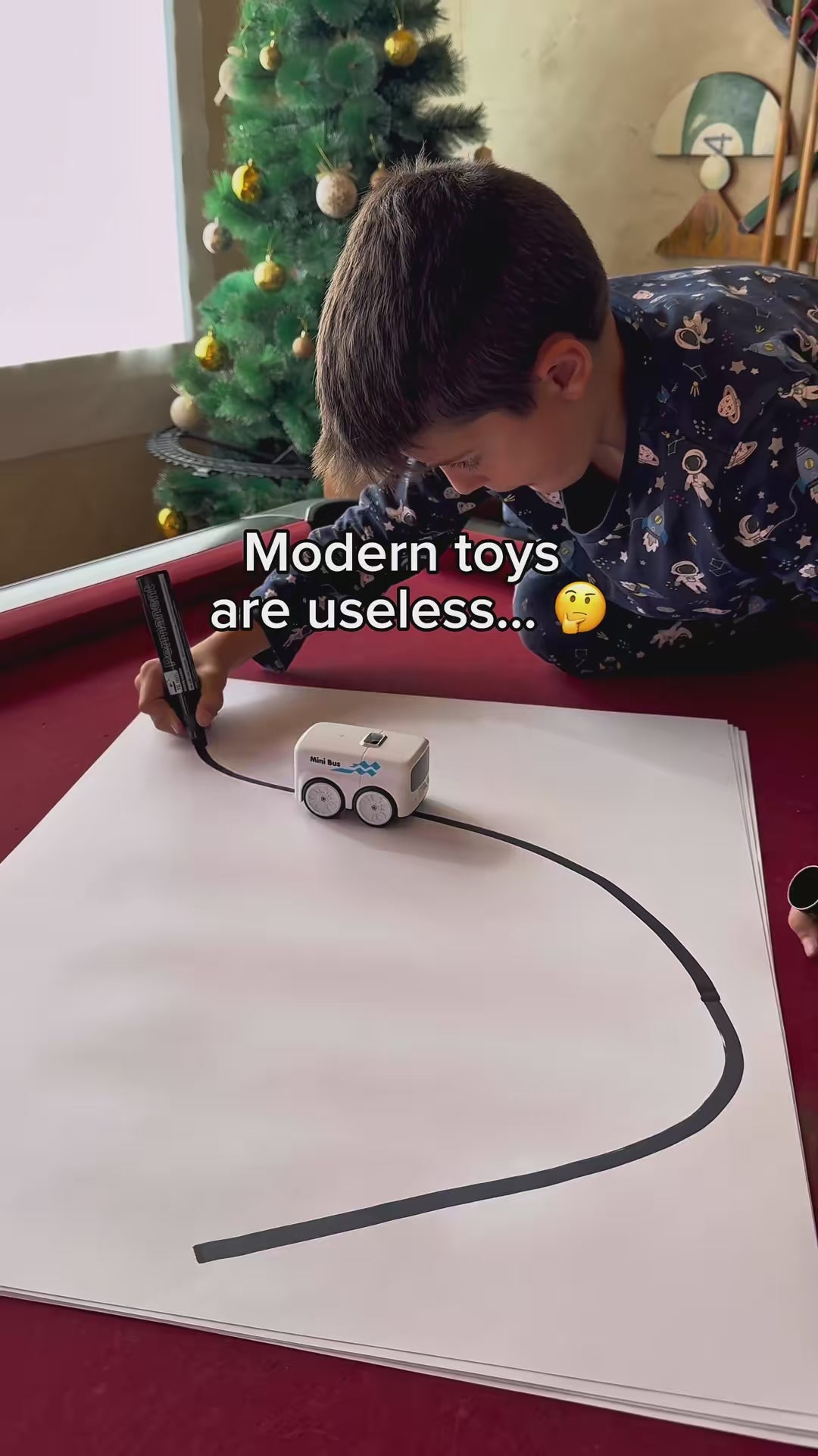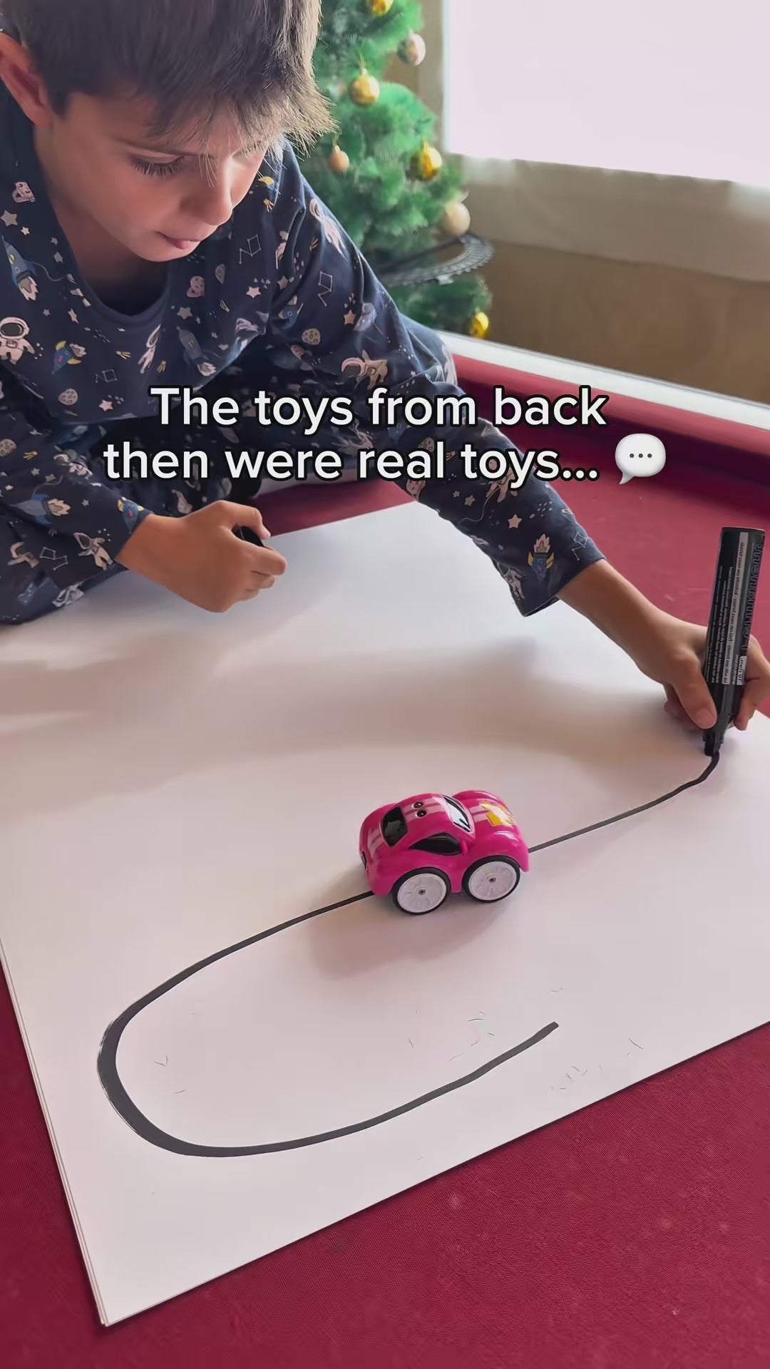 The car automatically follows the line you draw on any surface.